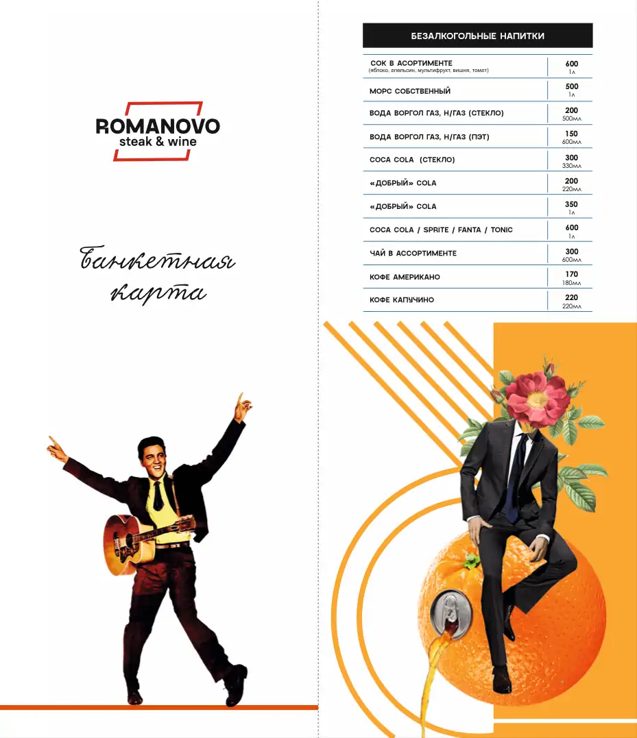 Банкетное меню специально разработано для качественного проведения массовых мероприятий Наше меню включает в себя блюда из свежих и высококачественных продуктов Команда ROMANOVO Steak&Wine обеспечит вас высоким уровнем сервиса и профессионализма , чтобы ваше мероприятие прошло на высшем уровне